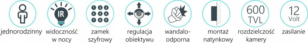 - i wbudowany zamek szyfrowy. Szyfrator umożliwia otwieranie wejścia za pomocą kodu pin.