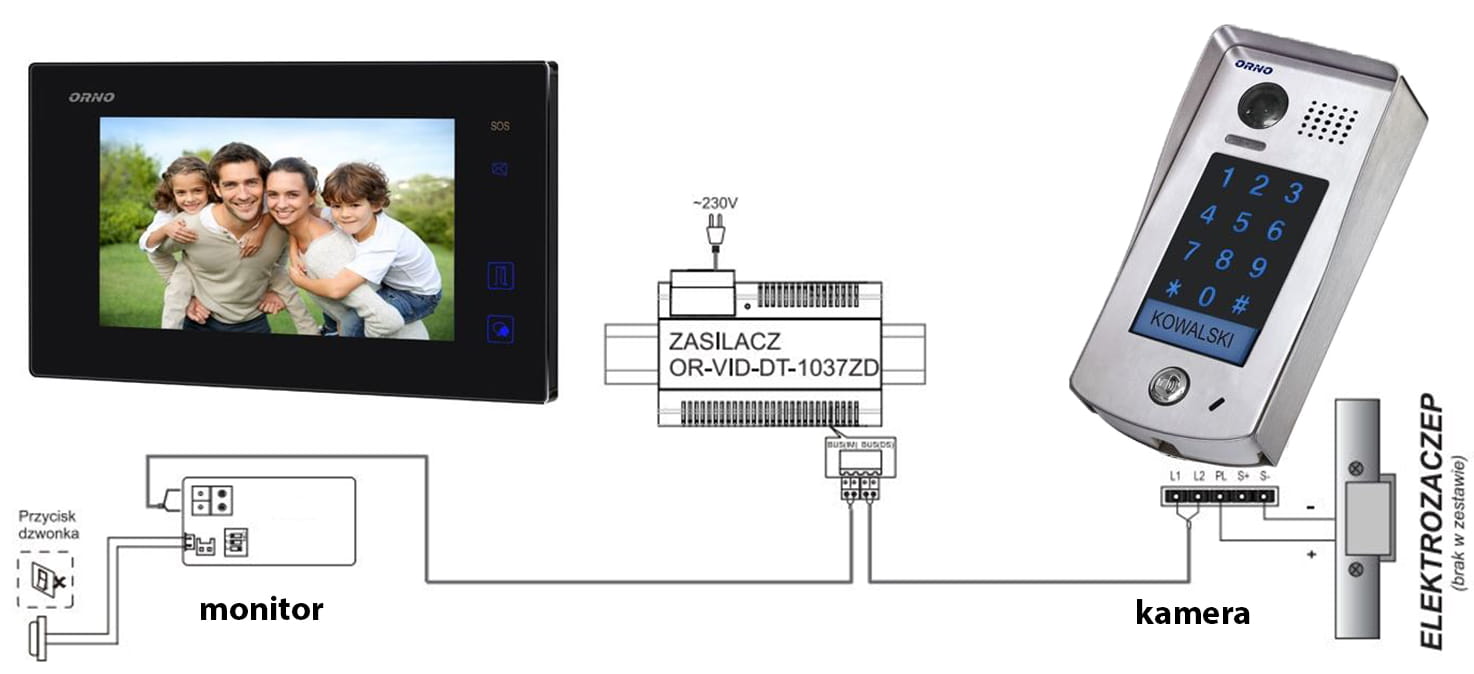 ZESTAW WIDEODOMOFONOWY KOLOROWY 7" OR-VID-VP-1037 ORNO