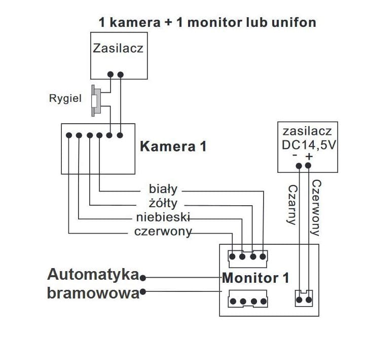 - Instalacja 4 przewodowa + 2 do rygla + 2 do bramy