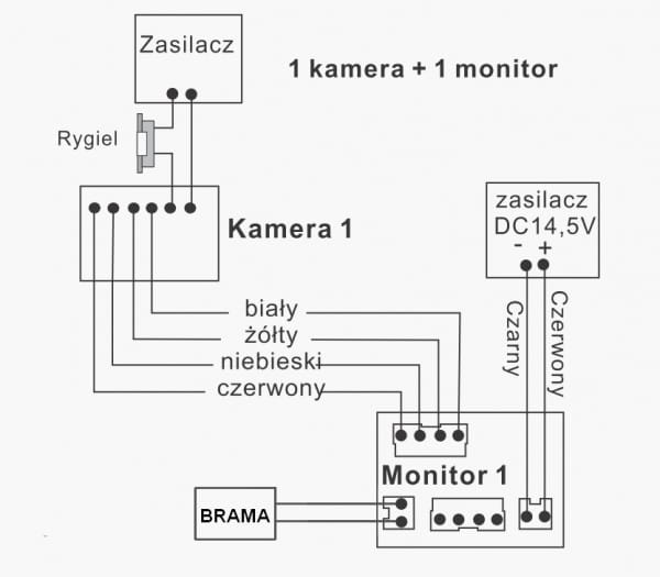 Przykładowy schemat podłączenia kamery z monitorem.