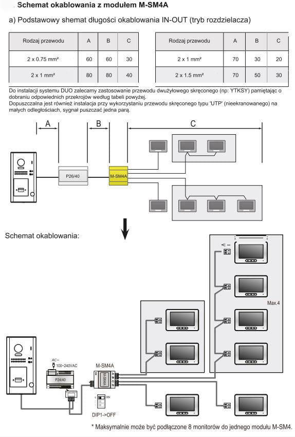 M-SM4A służy do rozdzielenia sygnału w rozbudowanych instalacjach gdzie ilość urządzeń wewnętrznych jest duża i niemożliwe jest podłączenie szeregowe.