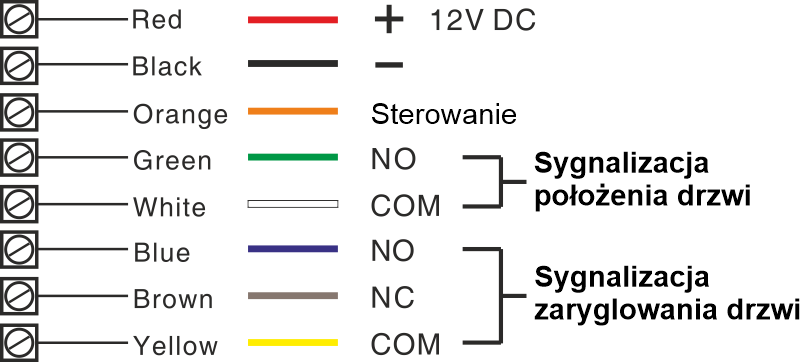 Elektrozamek trzpieniowy wyposażony jest w styk NO, który może być wykorzystany w systemie kontroli dostępu informując o położeniu sterowanych drzwi. Styk pozostaje zwarty jeżeli skrzydło drzwi znajduje się bezpośrednio w ościeżnicy (płytka z magnesem znajduje się pod elektrozamkiem - sygnał niezależny od stanu napięcia) . Dzięki temu możemy przekazać informację np. do systemu alarmowego, informując o stanie drzwi.