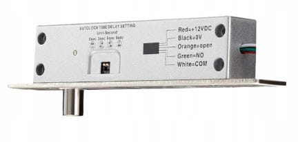 Elektrozamek ma możliwość ustawienia opóźnienia czasowego po którym elektrozamek zarygluje drzwi. Czas ten można ustawić na mikroprzełącznikach na obudowie elektrozamka. Możliwe ustawienia: 0 / 3 / 6 / 9 sekund zwłoki po fizycznym zamknięciu drzwi.