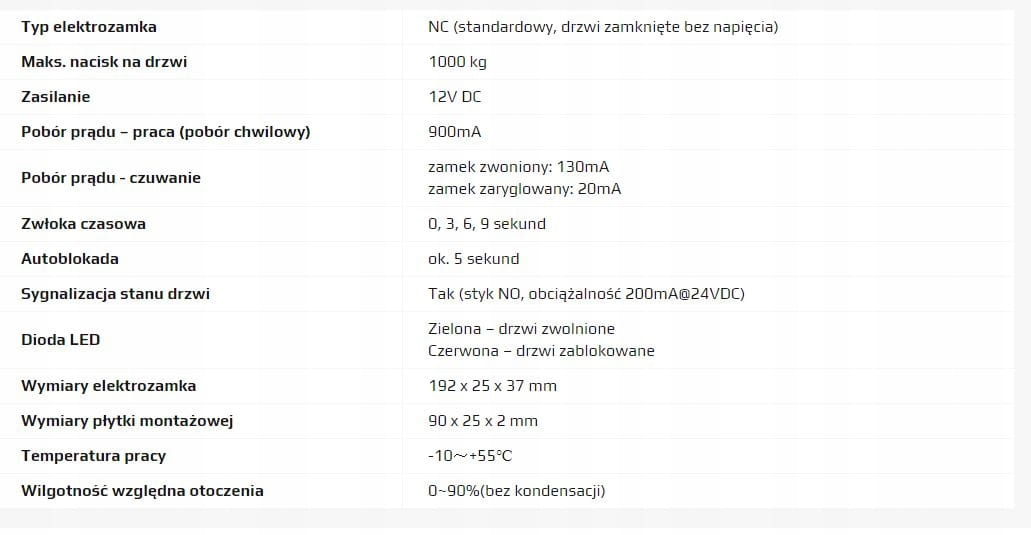 Elektrozamek trzpieniowy wyposażony jest w system atomatycznego zamykania. Jeżeli po zadziałaniu sygnału sterującego i zwolnieniu elektrozamka drzwi nie zostaną fizycznie otwarte - po upływie ok. 5-9 sekund od zakończenia impulsu sterującego ponownie zostaną zaryglowane.