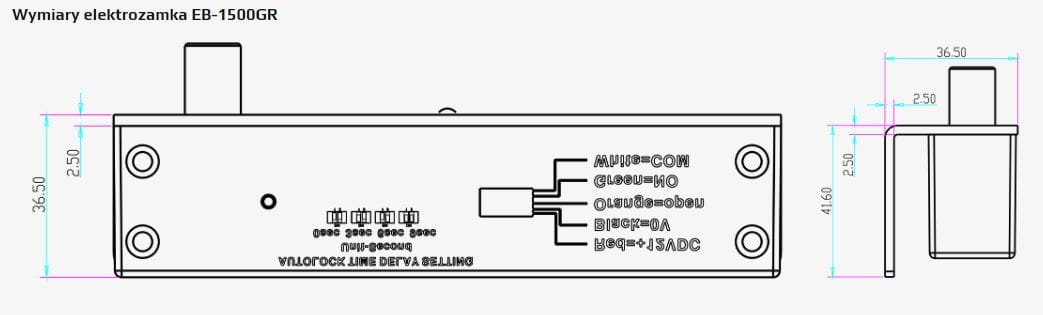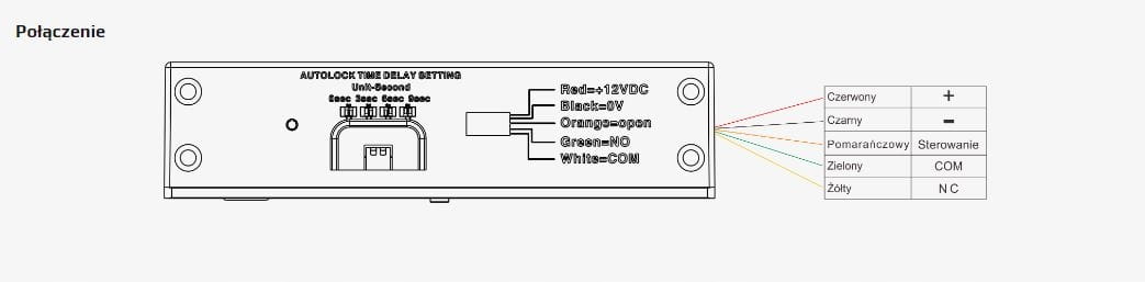 Elektrozamek ma możliwość ustawienia opóźnienia czasowego po którym elektrozamek zarygluje drzwi. Czas ten można ustawić na mikroprzełącznikach na obudowie elektrozamka. Możliwe ustawienia: 0 / 3 / 6 / 9 sekund zwłoki po podaniu sygnału sterującego otwarcie drzwi.