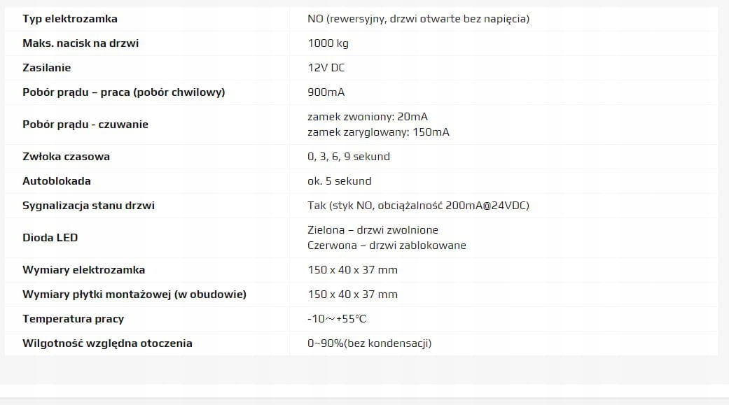 Elektrozamek trzpieniowy wyposażony jest w system atomatycznego zamykania. Jeżeli po zadziałaniu sygnału sterującego i zwolnieniu elektrozamka drzwi nie zostaną fizycznie otwarte - po upływie ok. 5-9 sekund od zakończenia impulsu sterującego ponownie zostaną zaryglowane.