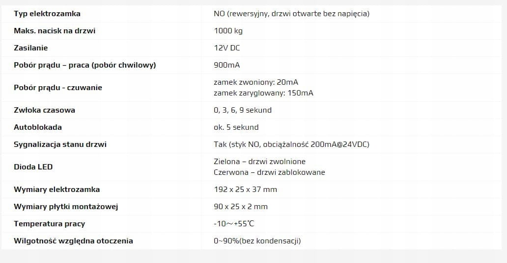 Elektrozamek trzpieniowy wyposażony jest w system atomatycznego zamykania. Jeżeli po zadziałaniu sygnału sterującego i zwolnieniu elektrozamka drzwi nie zostaną fizycznie otwarte - po upływie ok. 5-9 sekund od zakończenia impulsu sterującego ponownie zostaną zaryglowane.