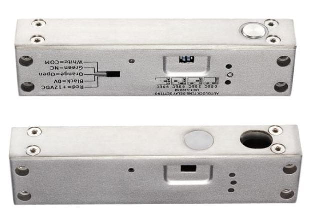 Elektrozamek ma możliwość ustawienia opóźnienia czasowego po którym elektrozamek zarygluje drzwi. Czas ten można ustawić na mikroprzełącznikach na obudowie elektrozamka. Możliwe ustawienia: 0 / 3 / 6 / 9 sekund zwłoki po podaniu sygnału sterującego otwarcie drzwi.