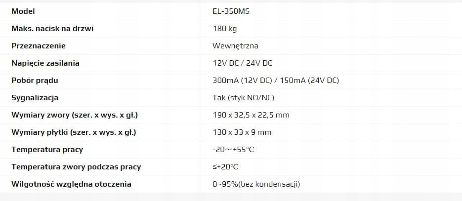 EL-350MS zwora elektromagnetyczna wpuszczana 180KG