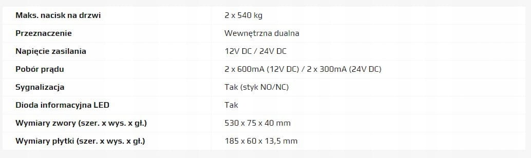 Scot EL-1200DSL2 Zwora elektromagnetyczna 2 x 540kg