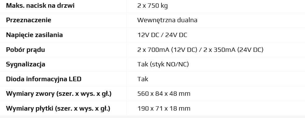 EL-1500DSL2 SCOT ZWORA ELEKTROMAGNETYCZNA 2 X 750KG Z SYGNALIZACJĄ
