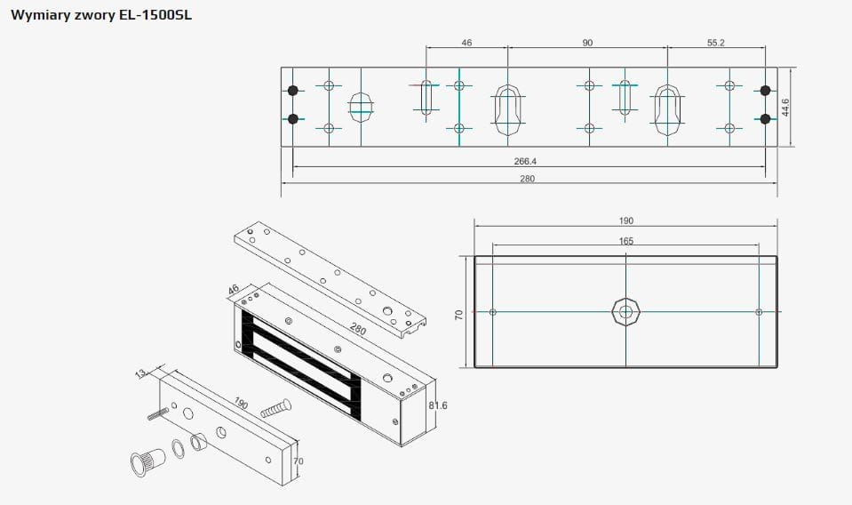 Dodatkowe uchwyty montażowe typu „L”, „ZL”, pozwalają na montaż zwory praktycznie na każdych drzwiach.