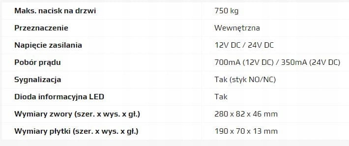 Zwora elektromagnetyczna wyposażona jest w przekaźnik NC, który może być wykorzystany w systemie kontroli dostępu informując o otwarciu / zamknięciu sterowanych drzwi. Dzięki temu możemy przekazać informację np. do systemu alarmowego, informując o stanie drzwi.