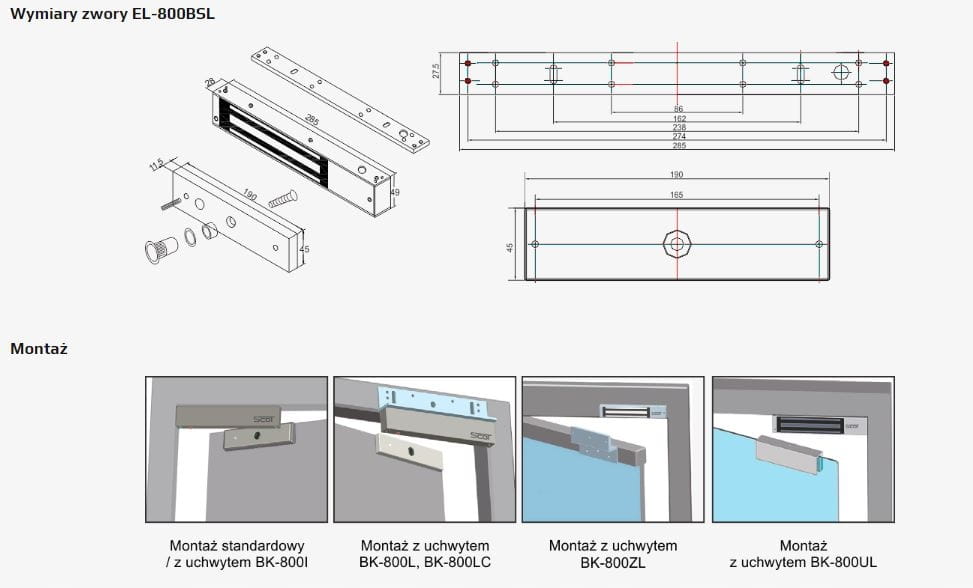 Dodatkowe uchwyty montażowe typu „L”, „ZL”, 'UL" pozwalają na montaż zwory praktycznie na każdych drzwiach.