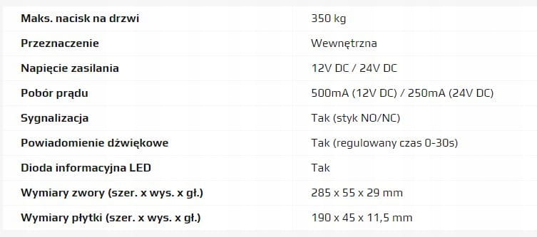 Zwora elektromagnetyczna wyposażona jest w przekaźnik NC, który może być wykorzystany w systemie kontroli dostępu informując o otwarciu / zamknięciu sterowanych drzwi. Dzięki temu możemy przekazać informację np. do systemu alarmowego, informując o stanie drzwi.