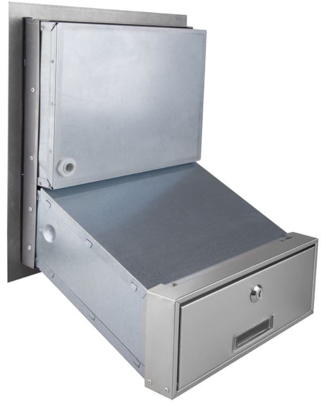 Szuflada o szerokości 250 mm jest skośna, dwuczęściowa i rozsuwana. Szuflada to pojemnik na korespondencję wbudowywany w słupek lub mur. Standardowo wykonany jest z blachy cynkowanej ogniowo. Dzięki rozsuwanej szufladzie głębokość skrzynki może być regulowana w zakresie 260-410 mm.