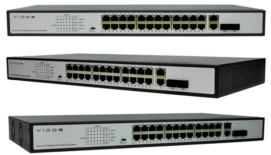 Dodatkowe Vidos PS242-370 wyposażono w 2 porty Combo Uplink, które składają się z portu UPLINK oraz gniazda SFP. Do gniazda SFP istnieje możliwość podłączenia np. modułu SFP światłowodowego, który pozwala na łączenie między sobą switchy za pomocą kabla światłowodowego i zwiększenie zasięgu do 2km.
