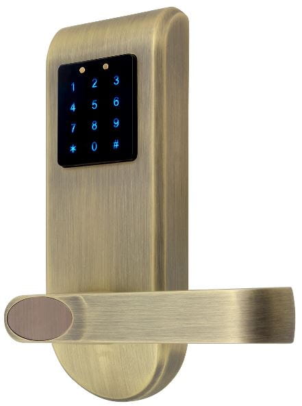 SZYLD Z KONTROLĄ DOSTĘPU ''EURA'' ELH-82B9 BRASS z klawiaturą dotykową, sterowaniem SMS, czytnikiem Mifare, modułem Bluetooth i uniwersalnym rozstawem śrub mocujących