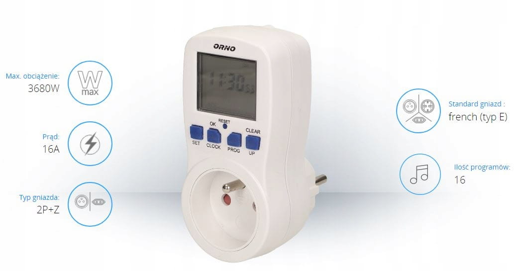 Programator służy do ustawiania czasu włączania i wyłączania urządzeń elektrycznych w określonym przedziale czasowym.