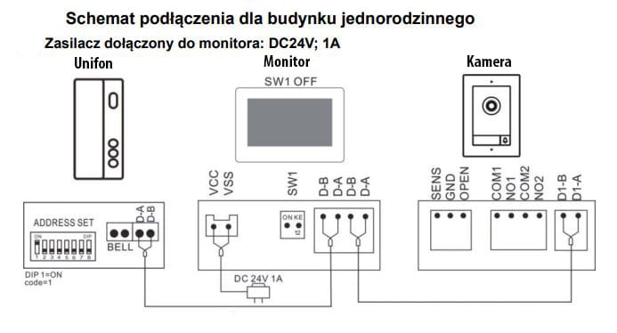 F-A01-2W ma dedykowane wejście do podłączenia dzwonka do drzwi bezpośrednio do unifonu. Nie musisz kupować/montować dodatkowego urządzenia, bo słuchawka może służyć jako dzwonek.