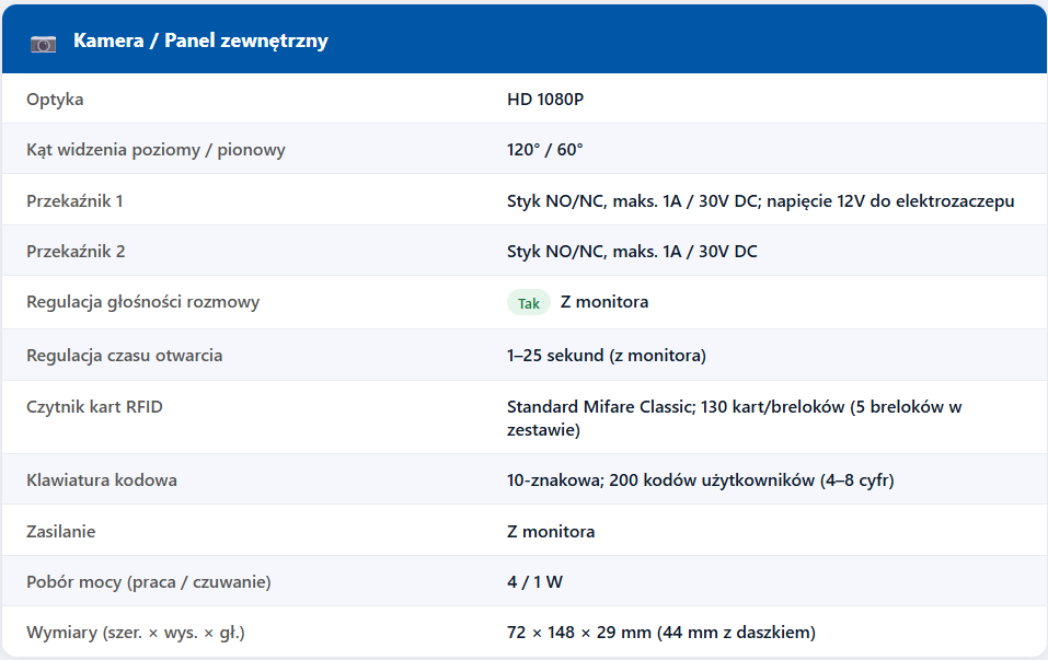 - ✅ Panel natynkowy z kamerą HD, RFID i klawiaturą