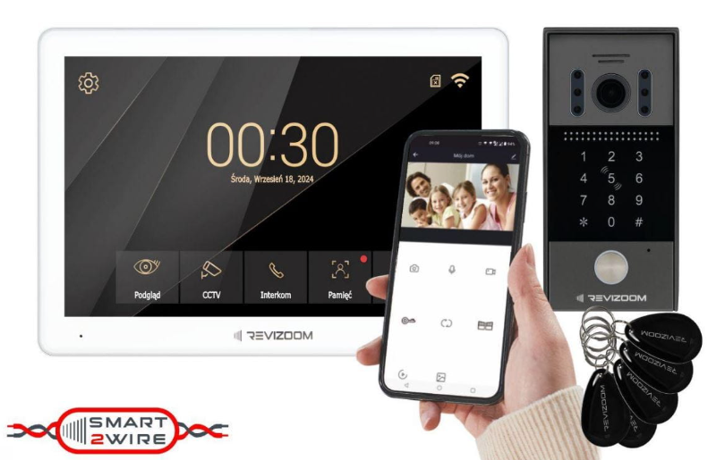 Wideodomofon SMART 10", instalacja 2 żyłowa, Wi-Fi, RFID, szyfrator, 72mm szerokość kamery
