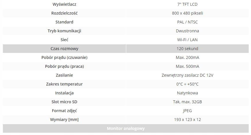 Wideodomofon SMART 10", instalacja 2 żyłowa, Wi-Fi, RFID, szyfrator, 72mm szerokość kamery