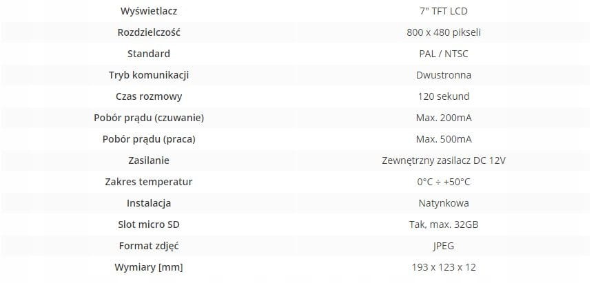 Wideodomofon Eura ORION PLUS kolor 7'' otwieranie furtki i bramy, pamięć
