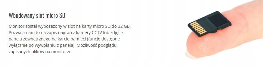 Stworzony do adaptacji. Ten prosty, elegancki i nowoczesny, a zarazem dyskretny panel z ekranem o przekątnej 7 cali sprawdzi się idealnie w każdym mieszkaniu. Urządzenie wyróżnia się dzięki dużemu, kolorowemu ekranowi LCD, podświetlanym przyciskom dotykowym oraz slotowi na karty micro SD (do 32gb)- w celu zapisu zdjęć oraz filmów z kamery.