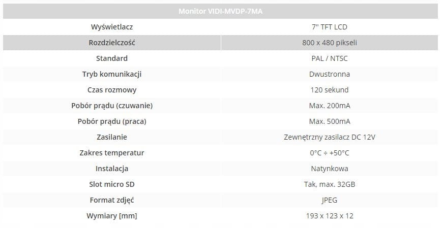 VIDI-VDP-7SL-W Wideodomofon Monitor 7 " White