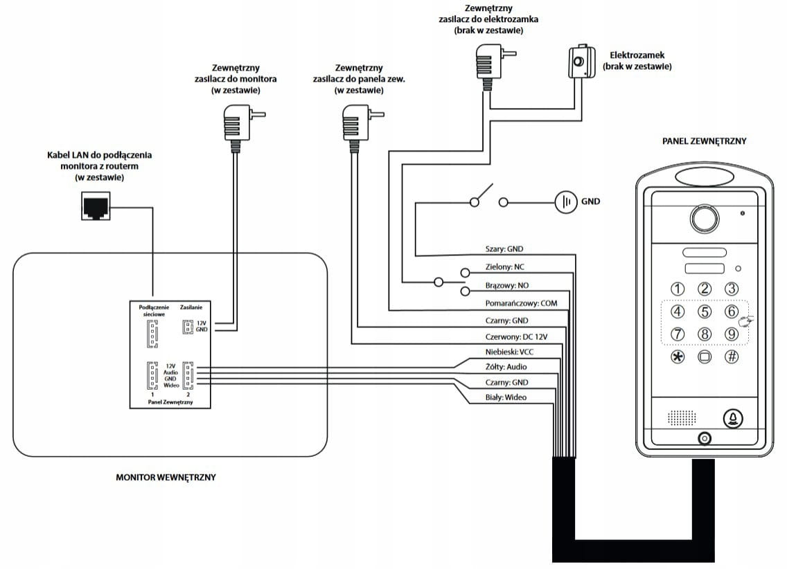 - zasilacz do panelu zewnętrznego - 1 szt;