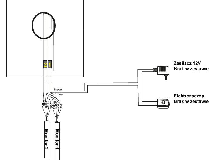 Wymagane okablowanie: 4 żyły między panelem zewnętrznym a każdym z monitorów, skrętka komputerowa lub kabel prosty np. YTDY.
