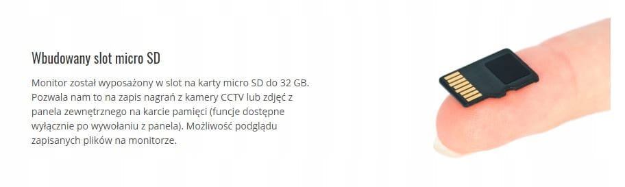Stworzony do adaptacji. Ten prosty, elegancki i nowoczesny, a zarazem dyskretny panel z ekranem o przekątnej 7 cali sprawdzi się idealnie w każdym mieszkaniu. Urządzenie wyróżnia się dzięki dużemu, kolorowemu ekranowi LCD, podświetlanym przyciskom dotykowym oraz slotowi na karty micro SD (do 32gb)- w celu zapisu zdjęć oraz filmów z kamery.