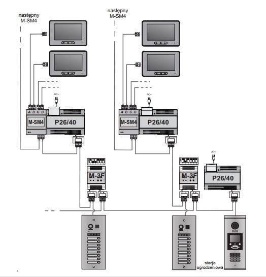 - ROUTER: Zwiększa możliwości systemu umożliwiając podłączenie do 256 użytkowników (32 lokale z każdego modułu. Maksymalne 8 modułów)