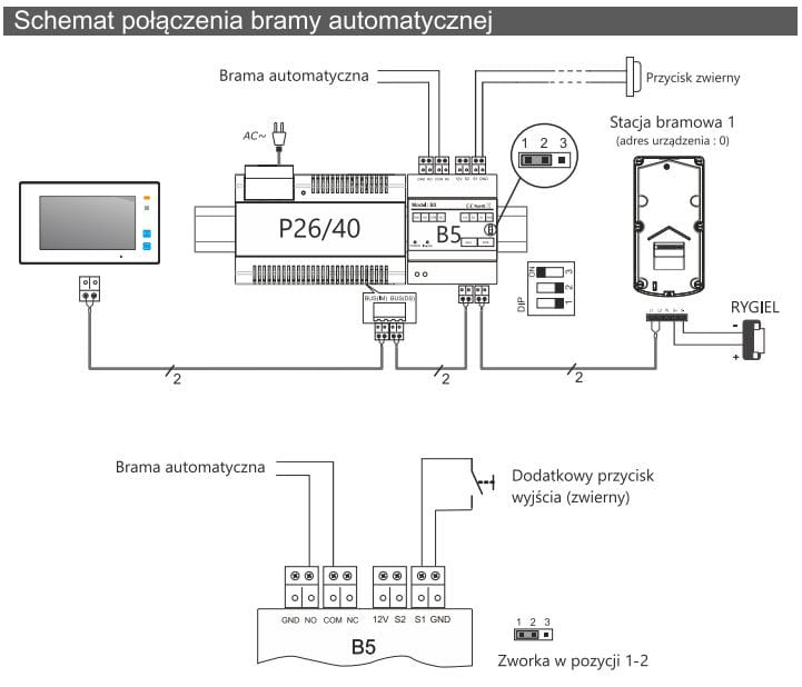 B5 to specjalny moduł przeznaczony do pracy w systemie VIDOS DUO. Posiada funkcję rozszerzenia funkcjonalność systemu o możliwość obsługi drugiego rygla/bramy lub sterowanie oświetleniem. Moduł umożliwia również obsługę rygli wysokoprądowych oraz otwieranie wejścia przy użyciu dodatkowego przycisku zwiernego NO przy wyjściu z posesji.