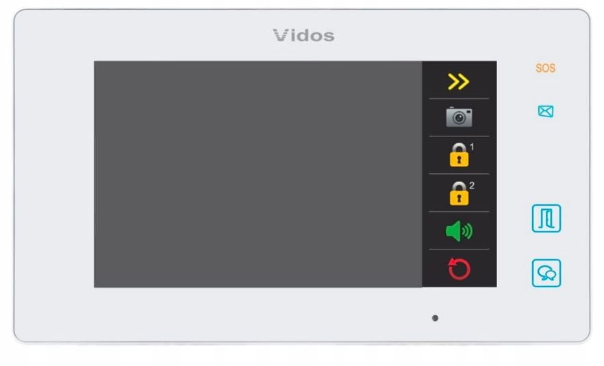Wielofunkcyjny monitor przeznaczony do pracy w systemie VIDOS DUO. Dedykowany dla systemów jednorodzinnych i wieloabonentowych. Dotykowy, 7″ wyświetlacz pozwala na wygodne nawigowanie po ekranowym menu. Wbudowana pamięć zdjęć oraz obsługa kart micro SD umożliwiają rejestrowanie wizyt oraz udostępniają możliwość pozostawiania wiadomości przez odwiedzających podczas naszej nieobecności. Monitor wyposażony jest w funkcję obsługi maksymalnie 4 stacji bramowych i poza furtką może sterować dodatkowym przekaźnikiem np. bramą automatyczną (po dodaniu modułu B5) oraz obsługę czujnika detekcji ruchu w stacji bramowej