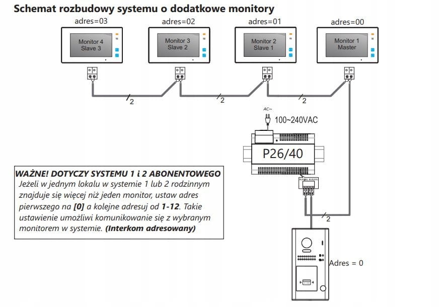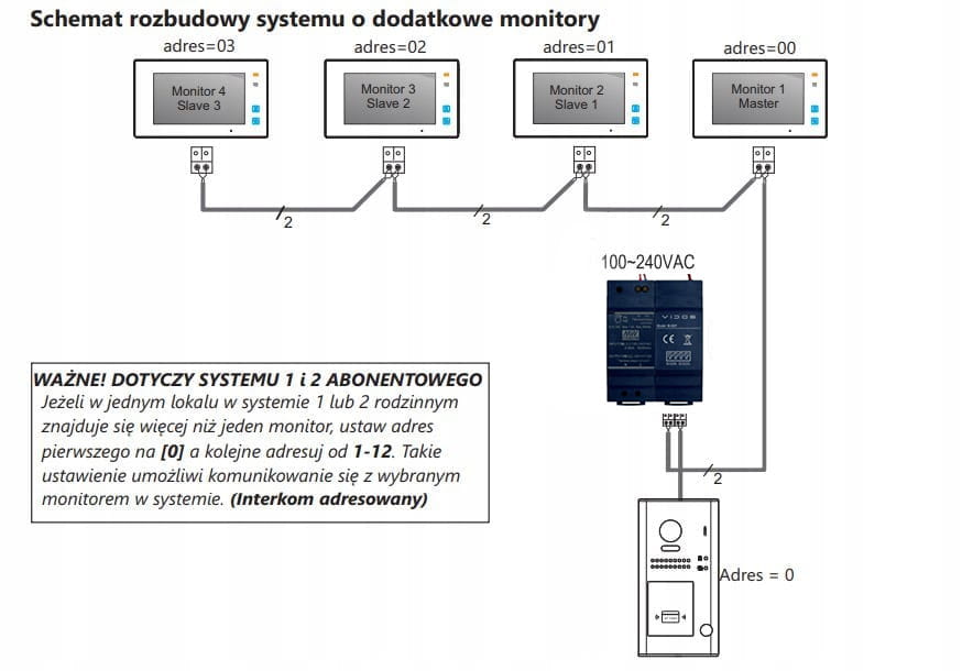 Adresowany interkom wewnętrzny i zewnętrzny dla połączeń pomiędzy lokatorami w systemach jedno i wieloabonentowych