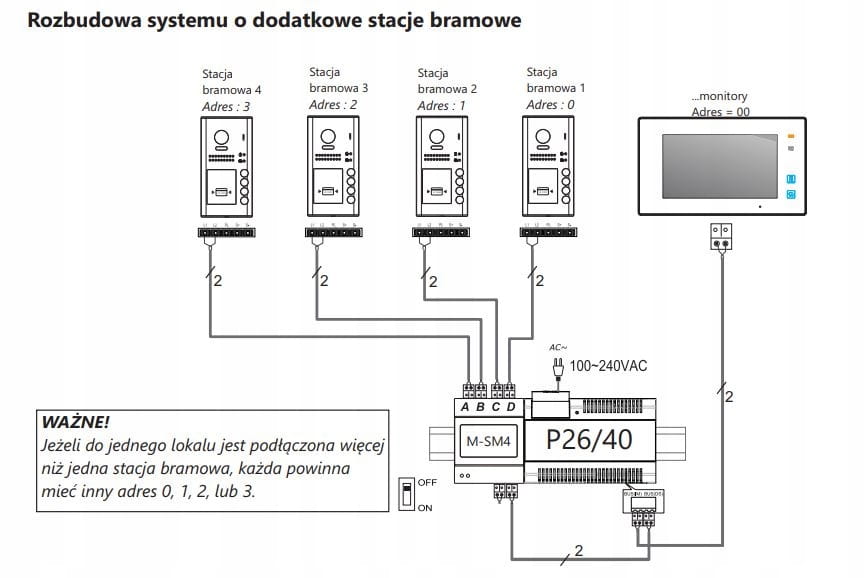 Możliwość obsługi do 4 stacji bramowych ( dodatkowe stacje bramowe za pomocą modułu M-SM4)