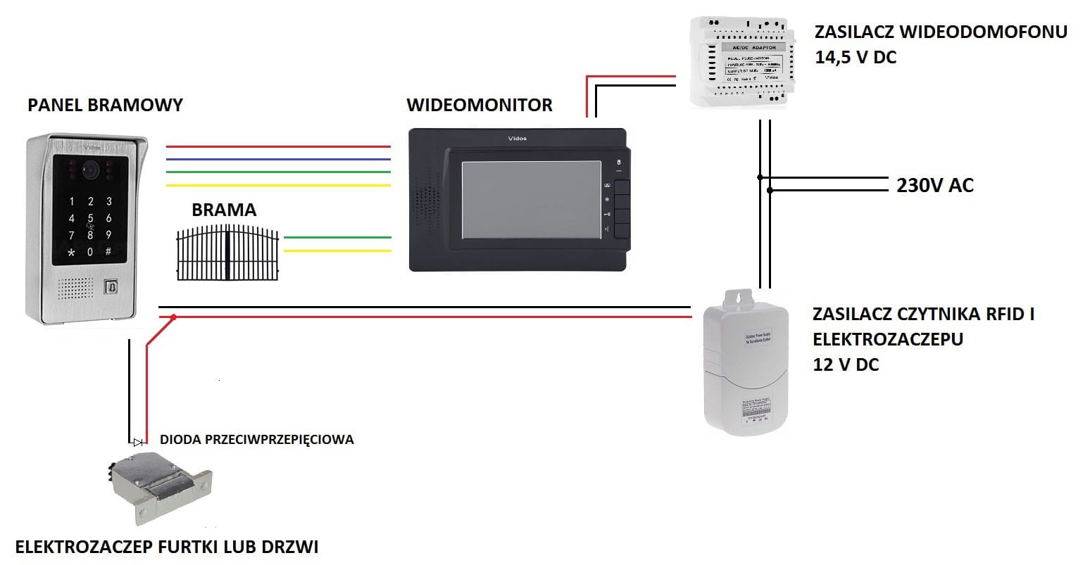 - 1 x kamera Vidos S20DA z zamkiem szyfrowym i czytnikiem zbliżeniowym RFID.