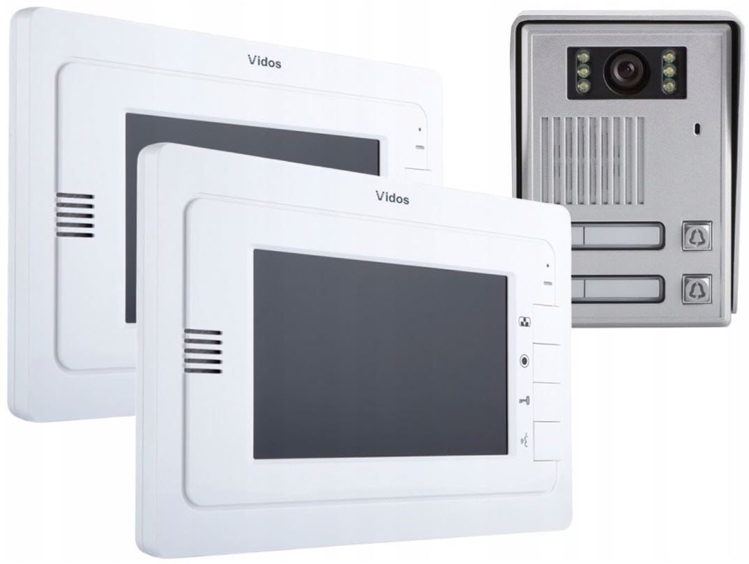 Wideodomofon dwurodzinny Vidos, gwarancja 36 miesięcy.
