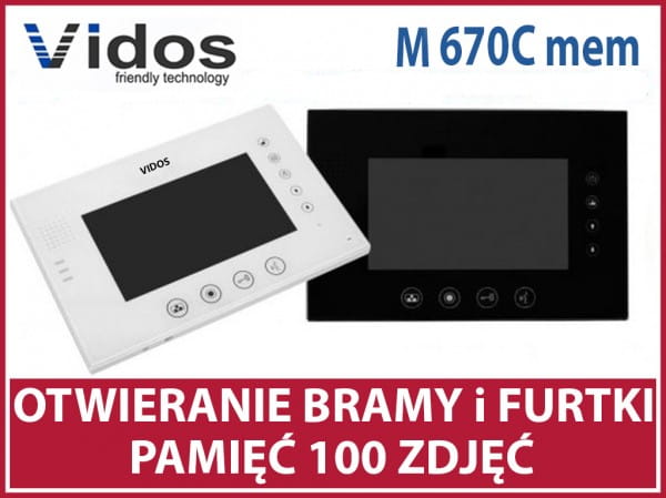 Przedmiotem aukcji monitor marki VIDOS (dawny Competition) model M670B-S2 z wbudowaną pamięcią na 100 zdjęć i z funkcją otwierania furtki i bramy. Obudowy monitorów są dostępne w kolorach białym lub czarnym.