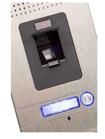 - Stacja bramowa jest wyposażona w wysokiej jakości pojemnościowy skaner optyczny. Możemy zaprogramować do 900 użytkowników (wzorów linii papilarnych). Identyfikacja następuje poprzez porównanie odcisku palca ze wzorem przechowywanym w pamięci urządzenia.