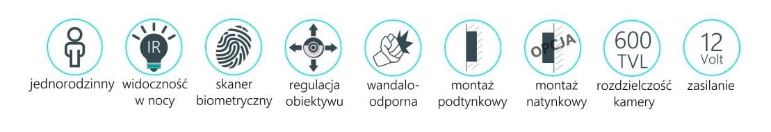 - Sterowanie elektrozaczepem z regulacją czasu otwarcia 1-99sek.