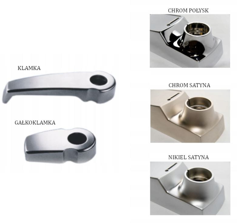 Podczas zakupu, prosimy napisać jaki rodzaj klamki chcieliby Państwo zamówić (tradycyjna klamka lub gałkoklamka) oraz wybrać kolor (chrom połysk, chrom satyna, nikiel satyna) i stronę uchwytu klamki.