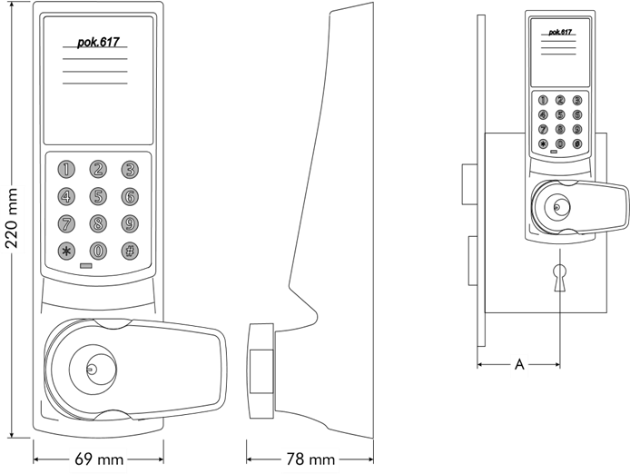 - Wymiary: 69x78x220 mm Masa: 1,7 kg (korpus wraz z gałkoklamką),