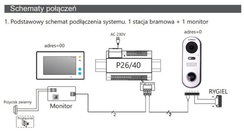 • Zasilacz P26/40 jest przeznaczony do pracy w dwużyłowym systemie cyfrowym VIDOS DUO
