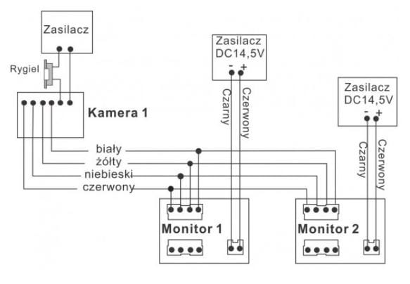 Schemat podłączenia monitorów M323B z kamerą S6.