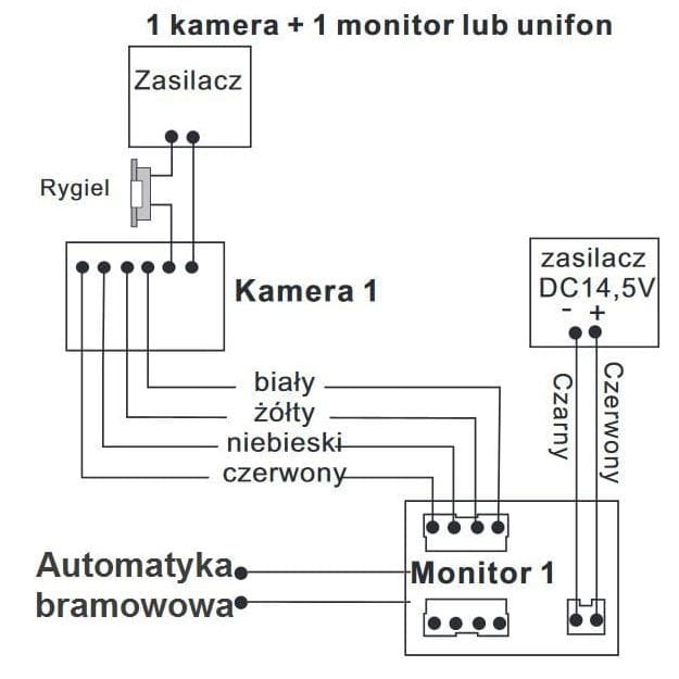 - Zasilacz na szynę DIN do podłączenia monitora