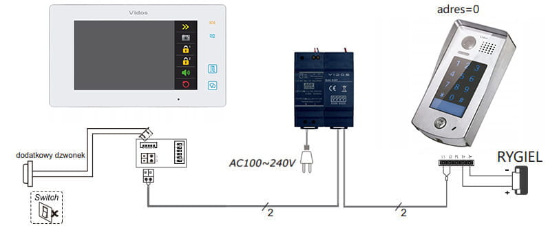 - Współpracuje ze wszystkimi stacjami bramowymi serii Vidos DUO