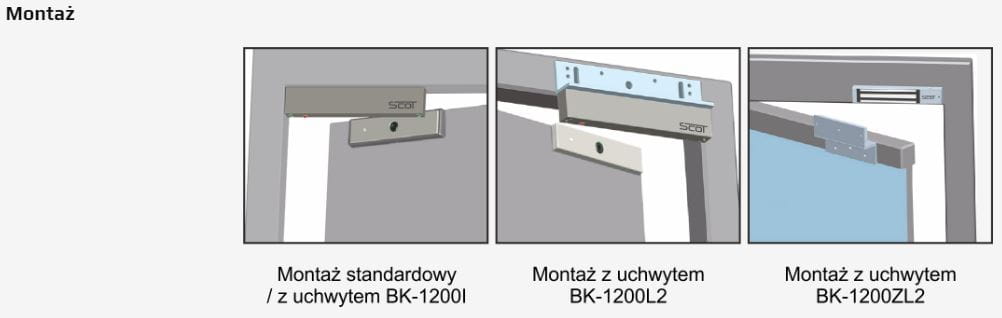 Dodatkowe uchwyty montażowe typu „L”, „ZL”, pozwalają na montaż zwory praktycznie na każdych drzwiach.